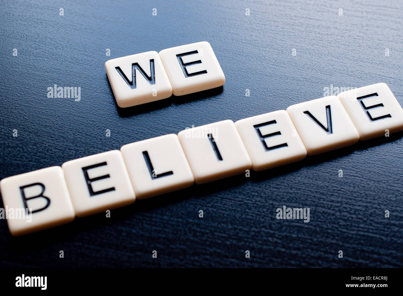 Alphabet Blocks Spelling The Words We Believe Stock Photo Alamy